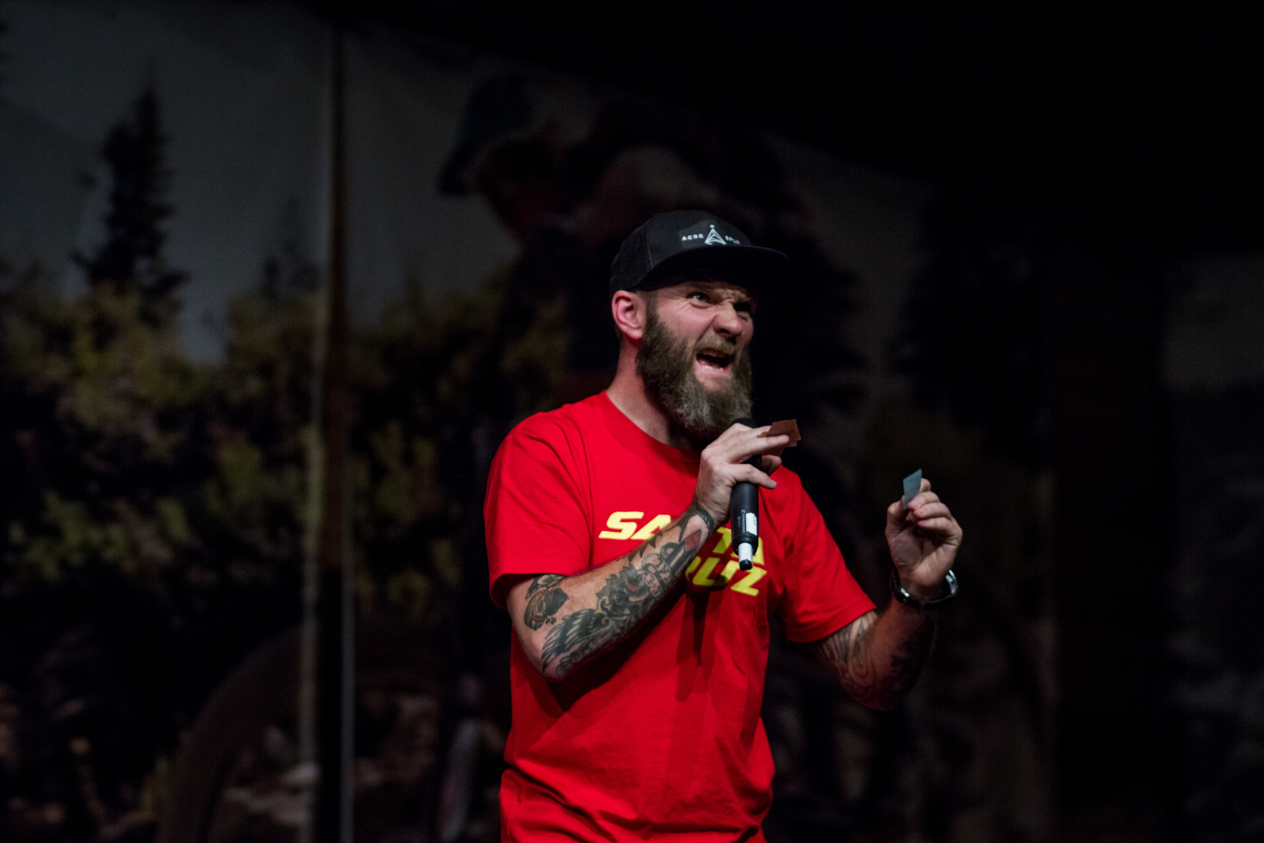 “Every year I present the Santa Cruz Bike Night at Kendal Mountain Festival in the English Lake District. There’s nothing else really like it. It’s a kind of live audience chat show with original big screen video content, craft ale, live music, interviews and a touch of anarchy that typifies our sport. This year was the best yet with 900 people in the audience. We had Greg Minaar, Martyn Ashton, Guy Martin and Josh Bryceland on the stage as well as a whole load of other guests. We also saw first screenings of edits that are now being released online in the days following the festival.