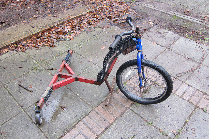 Slightly ridiculous… it reminds me of the time when Billy ‘the web’ made a Trike Bike here at Dirt HQ out of some scrap metal and some shopping trolly wheels!